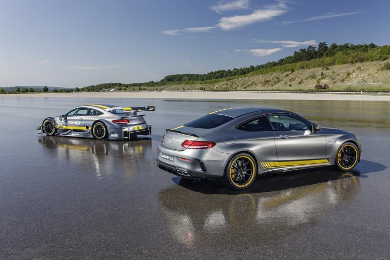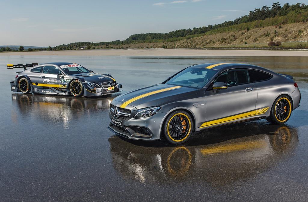 To celebrate the unveiling of their new 2016 DTM car, Mercedes-AMG developed a special version of the C-Class coupe for a very limited number of enthusiasts. The C63 S “Edition 1” mirrors very closely the paint scheme of the German race car with its selenite gray matte paint and yellow striping. It also features matte black high performance five-spoke wheels with the flanges painted yellow for a sporting appearance.