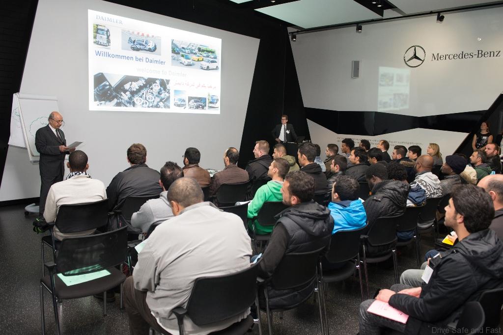 Forty refugees and asylum seekers have started a so-called ‘bridge internship’ at Daimler. The participants who come from Afghanistan, Eritrea, Gambia, Nigeria, Pakistan and Syria are between 20 and 51 years old. In the program Daimler is working with the German Federal Employment Agency and Job Centers. This internship lasts 14 weeks. The participants were selected by the Federal Employment Agency and the competent Job Centers. They are not in competition with the core workforce or temporary workers. Successful participants can be placed in other companies, temporary agencies, and professional training programs.
