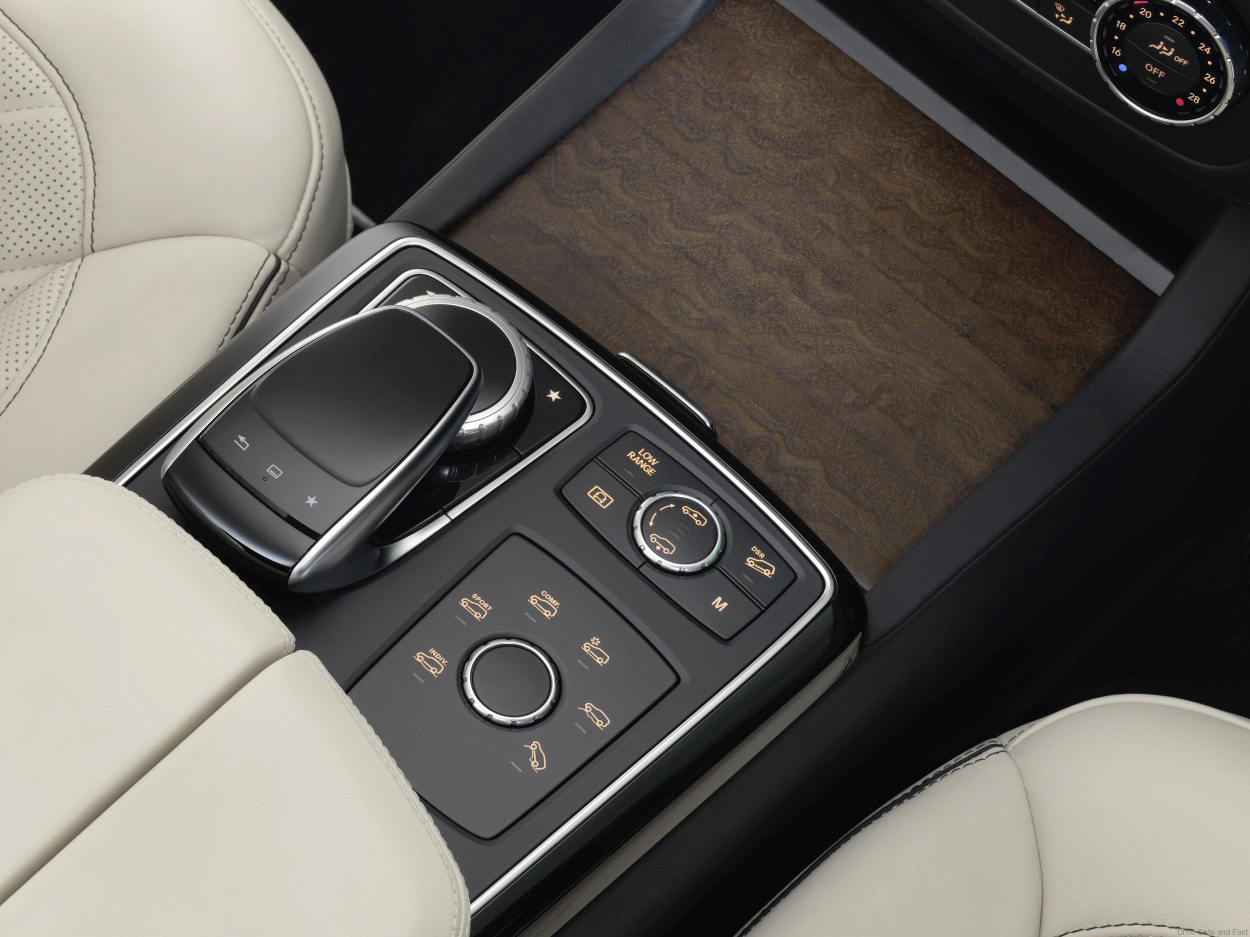 With DYNAMIC SELECT, the new GLS provides up to six transmission modes. In addition to the settings COMFORT, SLIPPERY and SPORT, with the DYNAMIC SELECT Controller in the center console, the driver can additionally choose INDIVIDUAL or an OFF-ROAD mode. If the GLS model is equipped with the optional Off-Road Engineering package, OFF-ROAD+ mode is also available. With this, the low-range gearbox and center differential lock intervene if necessary in order to ensure a high degree of drivability in demanding off-road terrain. This is further boosted by the extended functions of the AIRMATIC air suspension with raised ride heights for a ground clearance of up to 12.5 inches (306 mm) and a fording depth of up to 23.6 inches (600 mm).