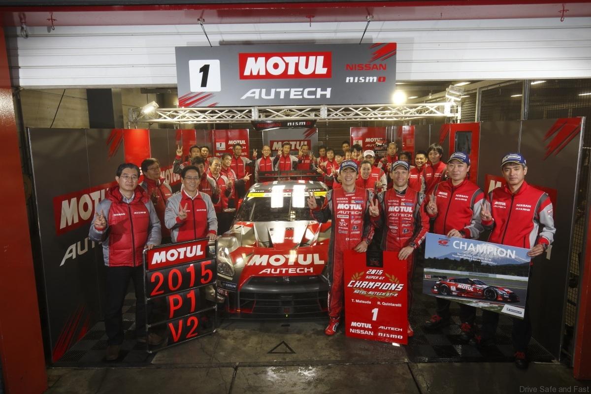 The final round of the 2015 Super GT Championship took place at Twin Ring Motegi last weekend, and the #1 MOTUL AUTECH GT-R of Tsugio Matsuda and Ronnie Quintarelli accomplished an amazing comeback from 12th to finish in second place. Displacing the ranking leader, the #12 Calsonic IMPUL GT-R of Hironobu Yasuda and Joao Paolo de Oliveira, they secured their second GT500 championship in a row.