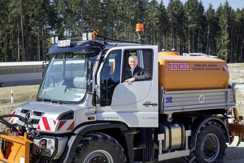 Freut sich über die Hilfe des Unimog U 430 bei der Streckenpflege: Markus Wiech, technischer Projektleiter des Prüfgeländes Immendingen in seinem „Universalmotorgerät“ (Unimog).