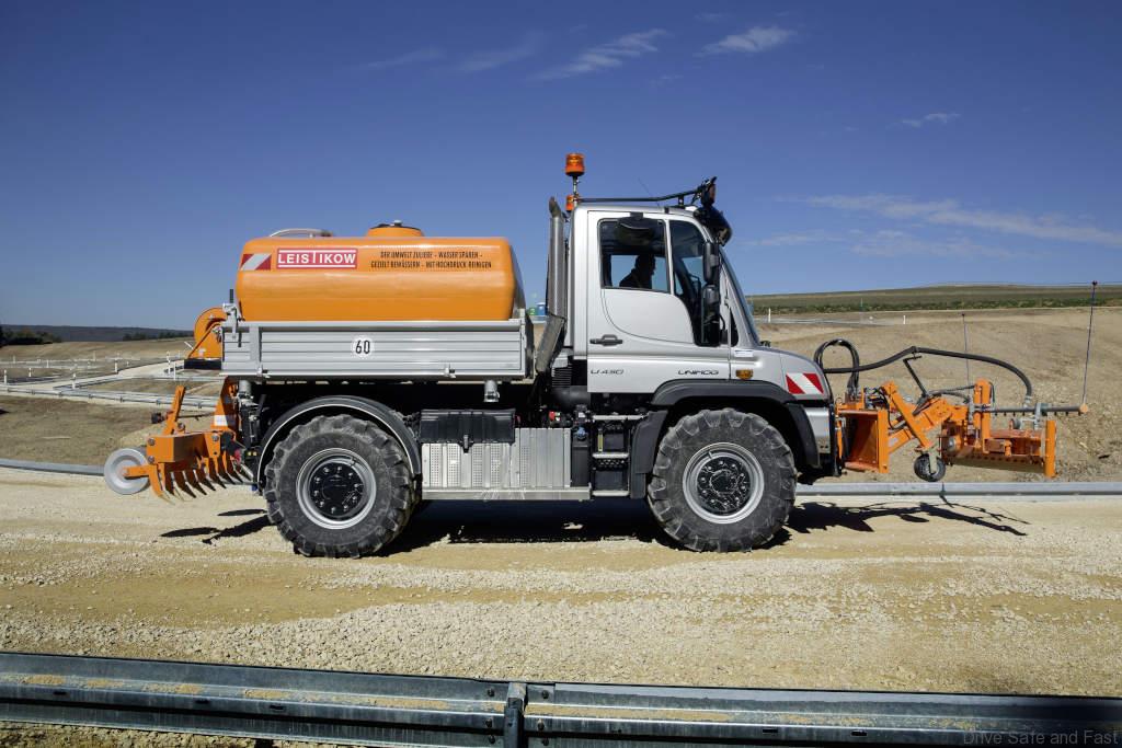 Daimler AG has begun using the first section, or module, of its new testing centre at Immendingen, near Tuttlingen, Germany. Playing an integral role in keeping operations going there is the Unimog U 430. The 300 hp model with a power output of 220 kW delivering up to 1200 Nm of torque is tasked with ensuring the test section is constantly accurate. On this circuit, new cars, prototypes and test vehicles are put through their paces on rough surfaces consisting of gravel, sand or other materials. For the 1.2 km course to provide consistent, reproducible results, the track has to be regularly maintained.