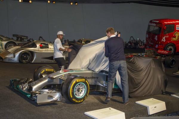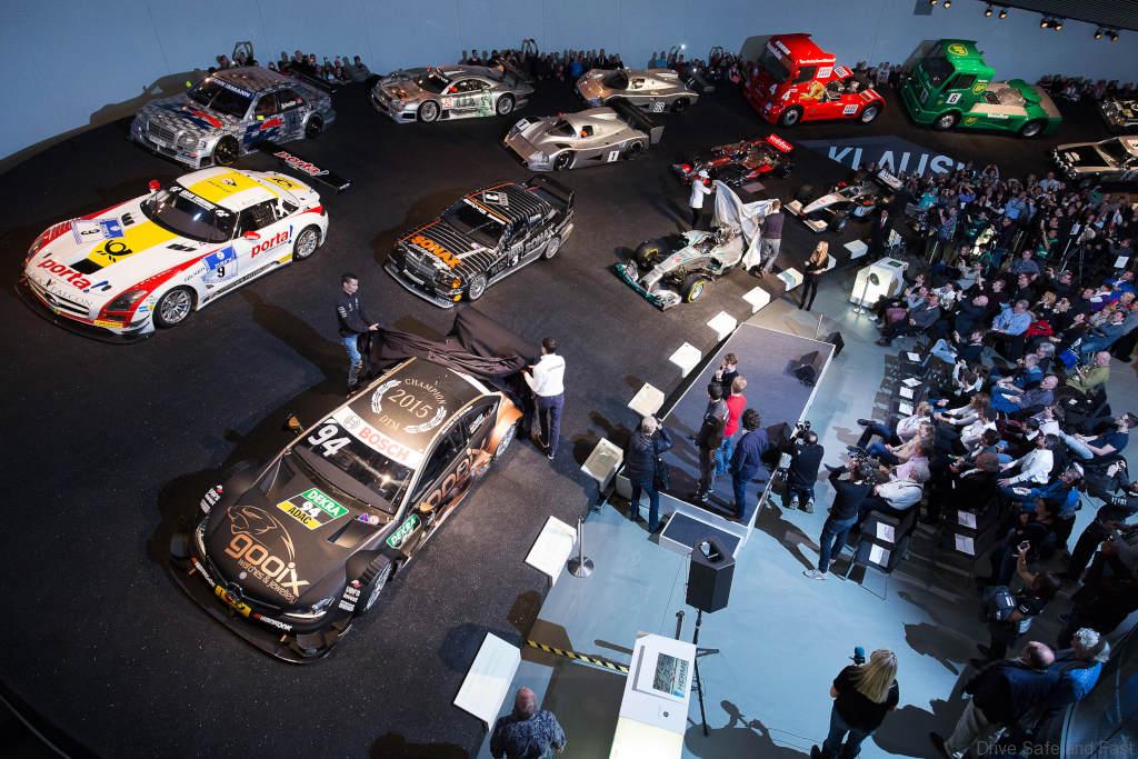Both cars were unveiled at a press conference in the Mercedes-Benz Museum to mark the end of the 2015 motor racing season, while Head of Motorsport Toto Wolff and Ola Källenius, member of the board at Daimler AG and Mercedes-Benz Car Sales & Marketing Division watched on along with many famous racing drivers.