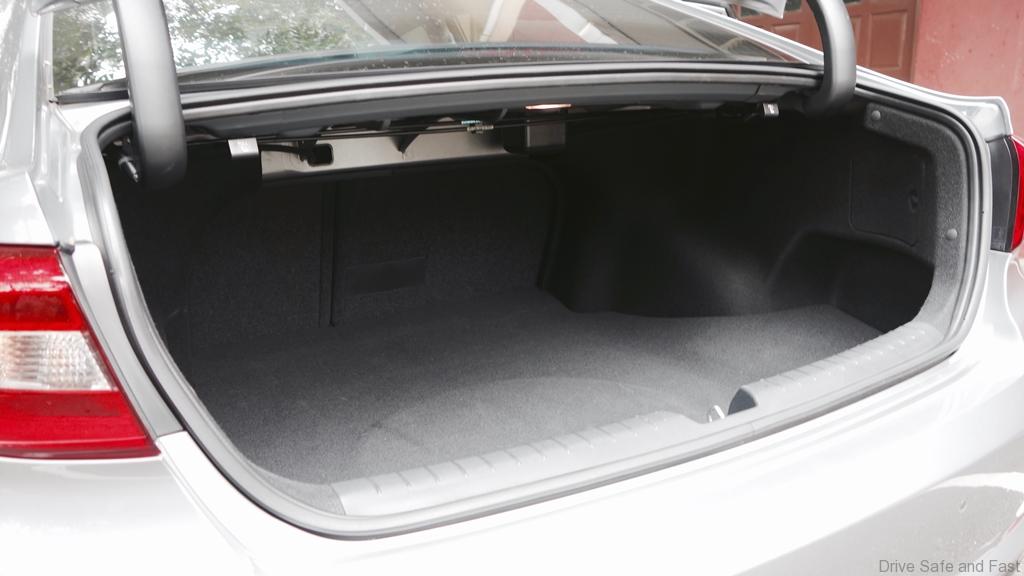 Hyundai also intergrates a smart trunk lid system, which automatically opens the boot just by standing behind the car with the key in your pocket. It sounds like a system that could easily go wrong, but in practice we found that they’ve pretty much ironed out most of the loopholes. This makes it quite naturally for shoppers who have their hands full to simply walk up to the car and wait for it to open itself up. The Sonata’s key fob even sends a signal to the car to extend the wing mirrors when you walk up to it. This enhanced keyless entry feature isn’t as common as you might think, so it’s nice to see on the Hyundai.