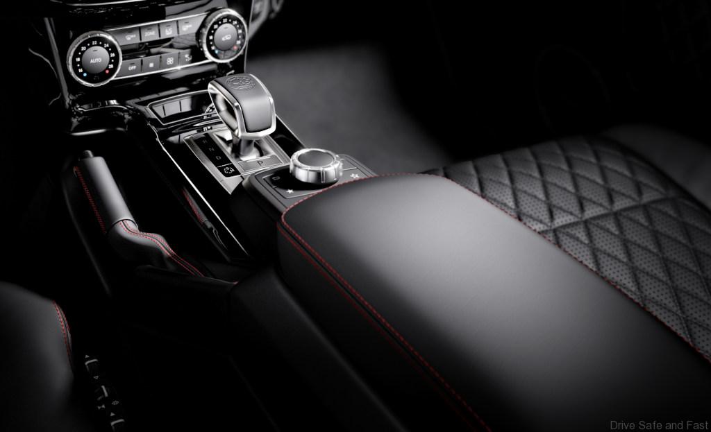 Exclusively for the Mercedes-AMG G 63 and G 65 models, “designo manufaktur” offers an even sportier touch with the DINAMICA Interior package. This includes the AMG performance steering wheel in black nappa leather, with the grip area trimmed in DINAMICA microfibre, as well as the seat and door centre panels along with the roof liner, seats, head restraints, dashboard, door handles, armrest and handbrake with white topstitching. Other interior details include the coloured seat belts in designo red and the leather-covered grab handles on the roof liner.