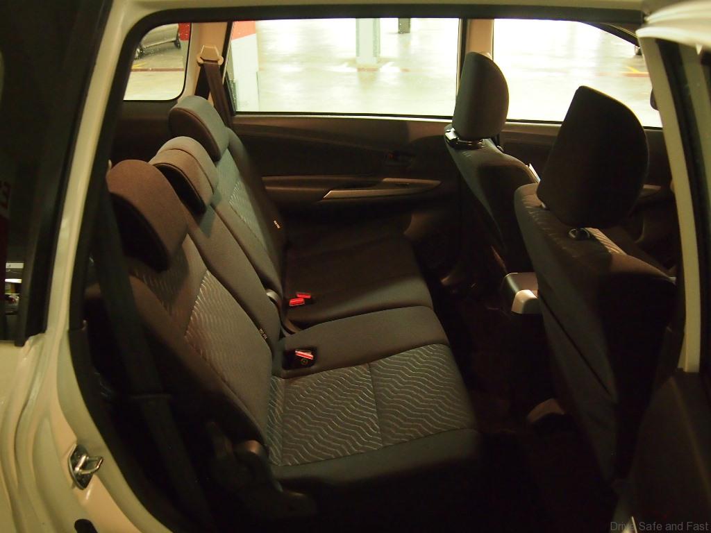 The interior is functional and welcoming, with soft fabric seats, and a slightly revised dashboard layout. There are multiple cubbyholes and cupholders in the cockpit alone, 4 of them for just the driver and front passenger, not even counting the glovebox. The steering wheel has the same look and thick rim as found in the older Avanza, without the remote audio controls. It tilts but does not telescope. Dual airconditioning is standard, with individual vents on the roof header for both second and third-row seats. This does a great job in keeping passengers cool on a hot humid afternoon in the city.