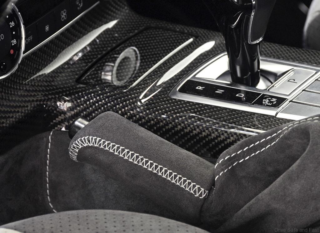 The tuned G-Class model delivers outstanding performance in perfect interplay with the seven-speed automatic transmission, whose gears the driver can also shift manually with the ergonomically shaped BRABUS aluminum paddle shifters on the steering wheel. The sprint time from zero to 100 km/h (62 mph) shortens to just 5.7 seconds. The top speed is an electronically limited 220 km/h (137 mph).