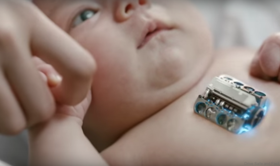 OK, yesterday’s Walken commercial was a bit stale but this one by Kia’s sister company, Hyundai is really weird. Just look at that cover photo, there’s an engine coming out of a baby’s chest!