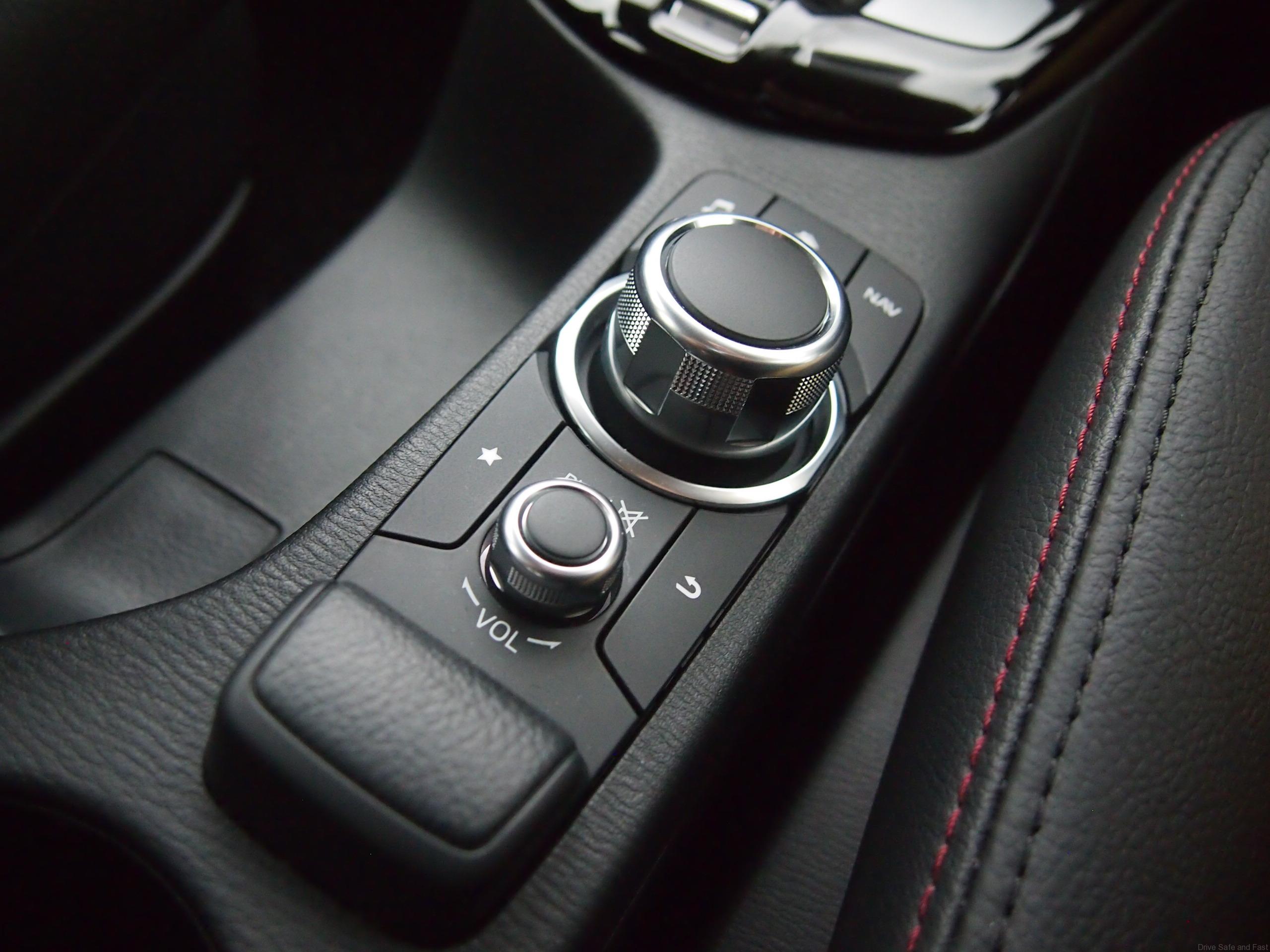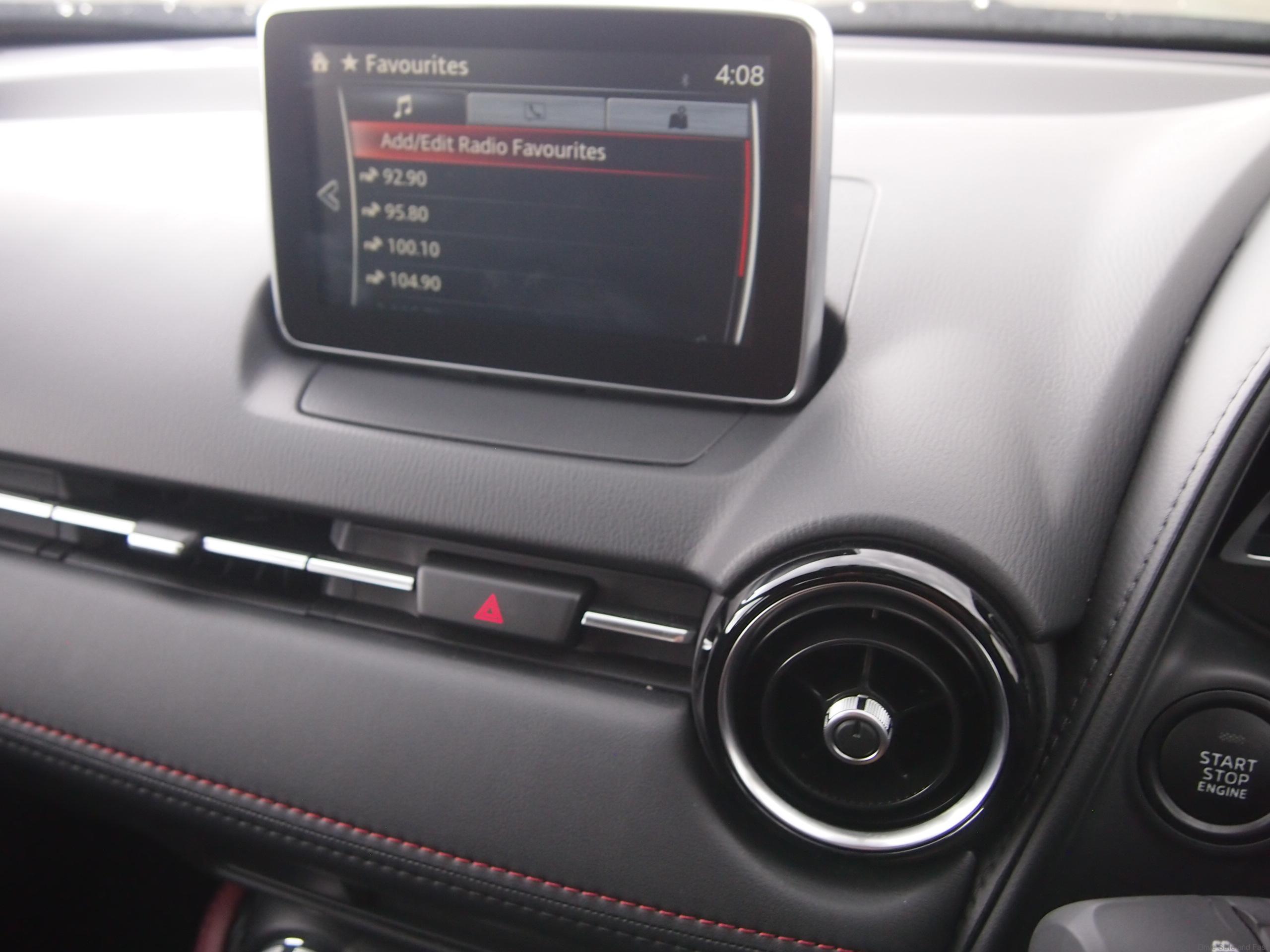 This Mazda CX-3 is based on the Mazda2 hatchback (and sharing most of its components) the interior of the CX-3 is a classy affair with leather/Alcantara seats and a leather trimmed dashboard complete with carbon fibre-esque detailing on the door trim and steering wheel. Mazda has decide to share the cabin features of the larger Mazda3 with the CX-3.