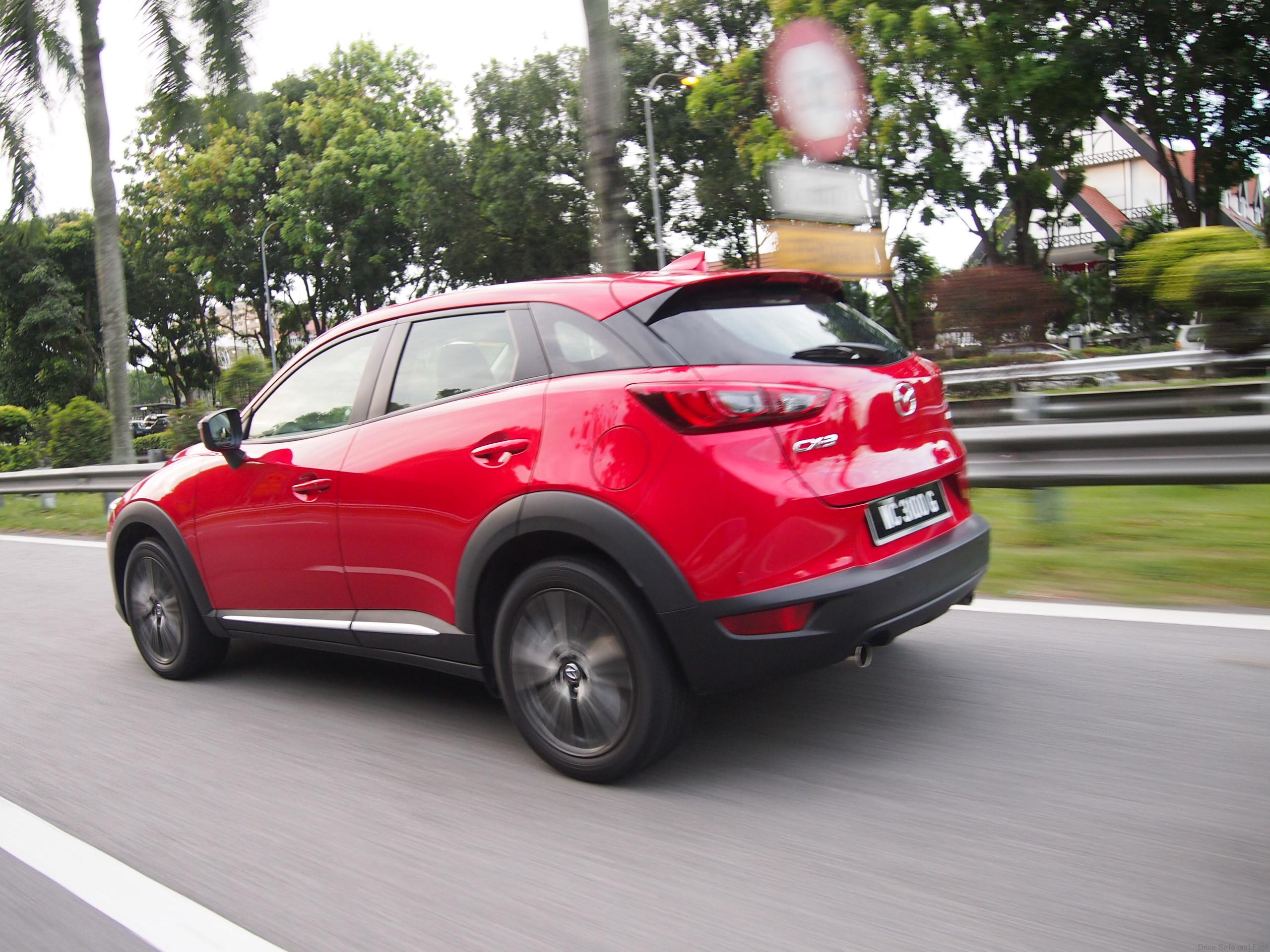 You will find a very European feel when you are on the road with this CX-3 as it uses the SKYACTIV-Chassis’ front MacPherson strut and rear torsion beam suspension was bolstered with stronger, firmer suspension bushings and retuned springs and shocks. The electric power-assisted steering, meanwhile, has a high steering gear ratio in the name of a better balance between steering feedback and vehicle response. Although this comes at the expense of the turning radius, the figure (5.3m kerb-to-kerb) still puts the CX-3 among the class leaders. Finally, the rear brakes received solid discs rather than drums to go with the ventilated front discs.