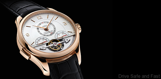 The sophisticated dial with different levels and refined finishes reflects the two complications of the timepiece. The upper dial, embellished with a fine ivory-grainé texture, is reserved for the date, hours and minutes and the chronograph indications with its lacquered counters. The lower level with vertical satin finishes unveils the intricate construction of the ExoTourbillon at 6 o’clock.