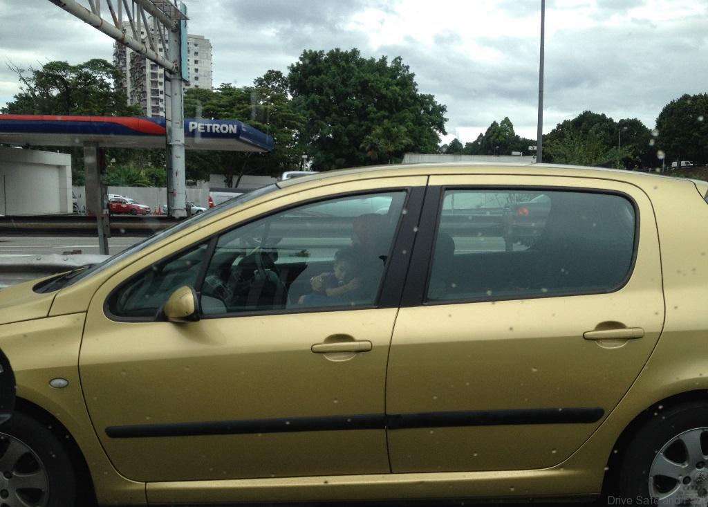 We keep seeing this almost daily when on the road but this time we were in the passenger seat and we managed to snap a picture of this driver holding a toddler on her lap while driving…..this is very very very dangerous especially in heavy traffic where there will be constant braking and moving and braking again.