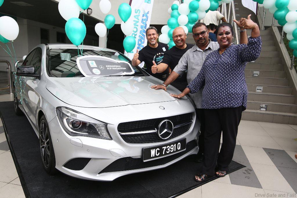 Nine years of staying loyal to the same fuel brand has paid off for Annambah Nagappan, 46, a clerk from Klang, Selangor, with the biggest reward of her life from PETRONAS. Annambah, who was announced as the grand prize winner in PETRONAS’ Pump n Win Campaign at a prize presentation ceremony held at PETRONAS Station Solaris today, was ecstatic when she received the keys to her brand new Mercedes-Benz CLA200.