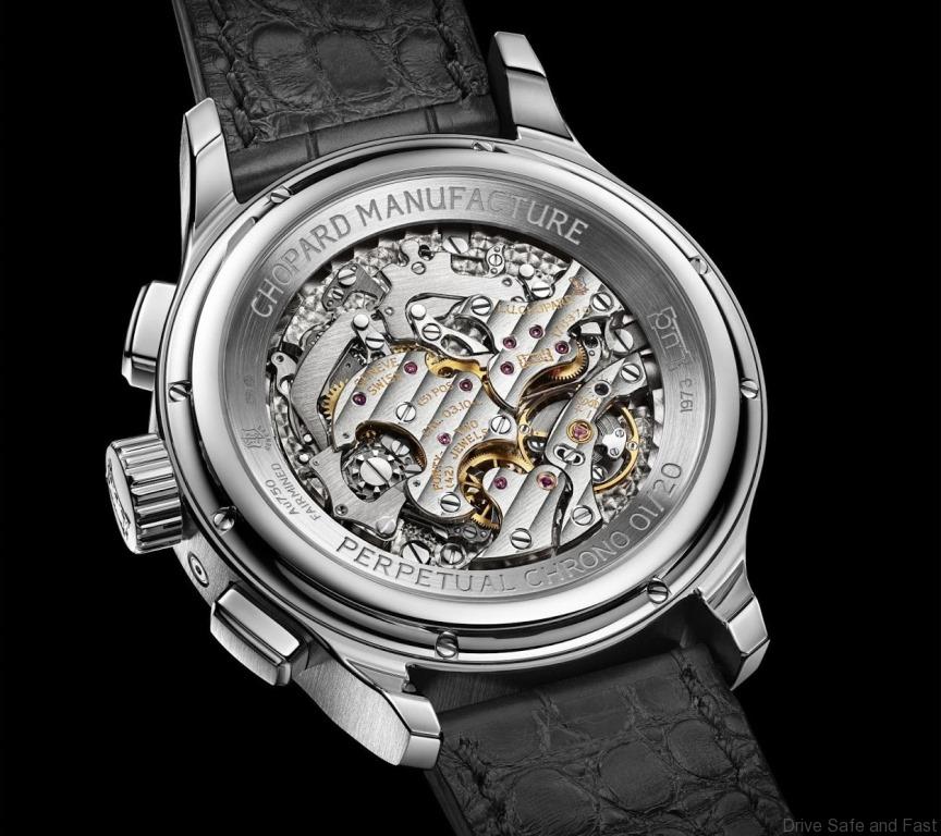 The 45 mm case of the L.U.C Perpetual Chrono is entirely made of “Fairmined” 18-carat gold, sourced from Fairmined certified mining cooperatives in Columbia, Peru and Bolivia. The L.U.C Perpetual Chrono in white gold is the first L.U.C watch being produced out of 18-carat « Fairmined » white gold by Chopard.