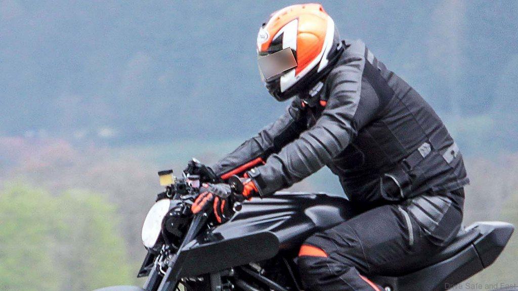 Spotted being tested near KTM’s headquarters in Austria, it appears to share major components with the 1290 Super Duke R including the main frame, single-sided swing-arm, brakes and wheels, as well as the 1301cc V-twin engine.