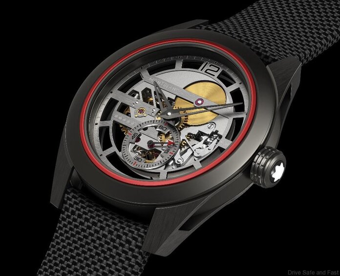 The Montblanc engineers worked on a combination of black DLC titanium for the horns and ITR2 kevlar/carbon elements for the middle case, case back, bezel and crown. The result is a watch that weighs in at just 14.88 grams making it one of the lightest mechanical watches in the world. ITR (Innovative, Technical, Revolutionary Resin) is a composite material charged with carbon nanotubes. It is eight times lighter than steel and four times lighter than titanium. The use of a highly resistant synthetic fibre, to reach utmost robustness, is a world première in case-making materials. The 40mm case also loses weight through the use of horns made of skeletonized titanium.