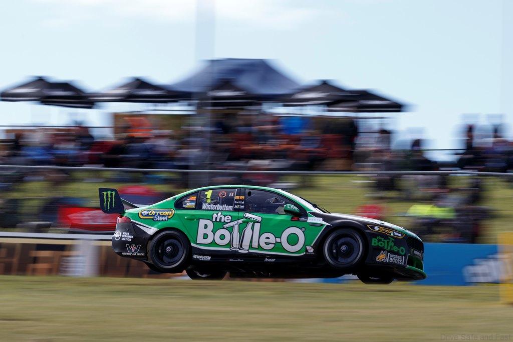 It was a drag race down the front straight with Golding getting his GRM Commodore up the inside on the final corner. But the Prodrive Falcon had the goods, just inching home ahead of his competitor.
