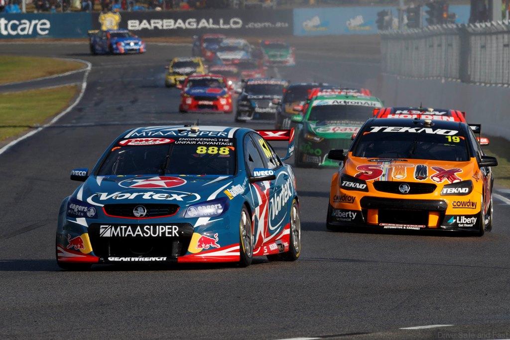 Jack Le Brocq and James Golding just had the best finish of the Supercars Dunlop Series this season, separated by three-hundredths of a second crossing the line side by side. After winning yesterday’s race under red flag conditions, Le Brocq had the chance to run to the finish as the leader and he had to work hard for it.
