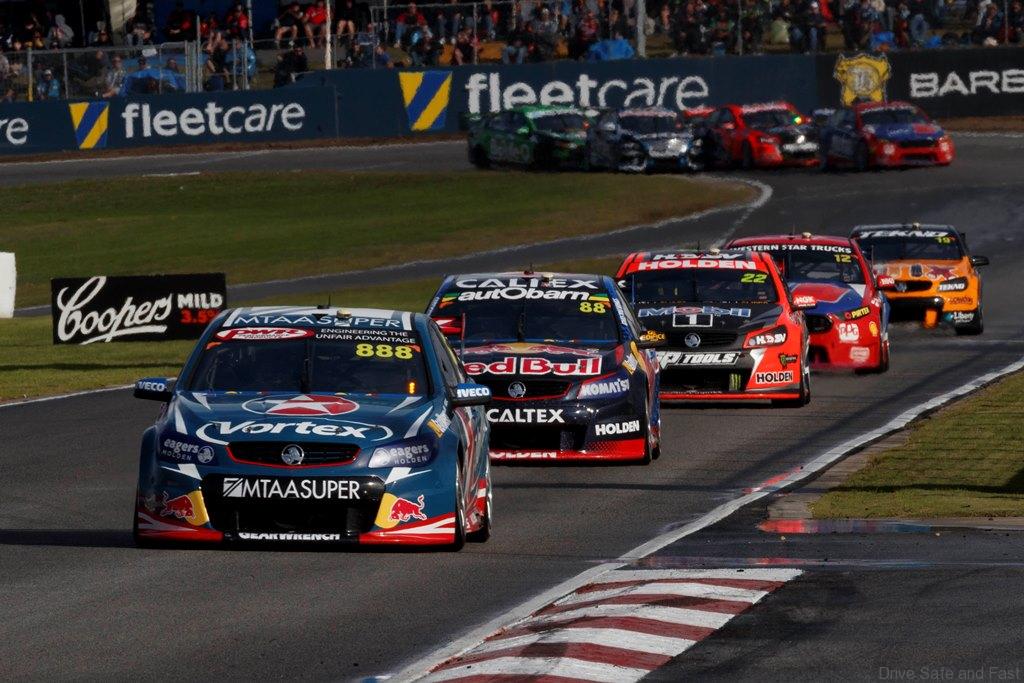 Le Brocq lined up on pole position after his win yesterday, but dropped back off the start, with veteran Paul Dumbrell taking the lead early.