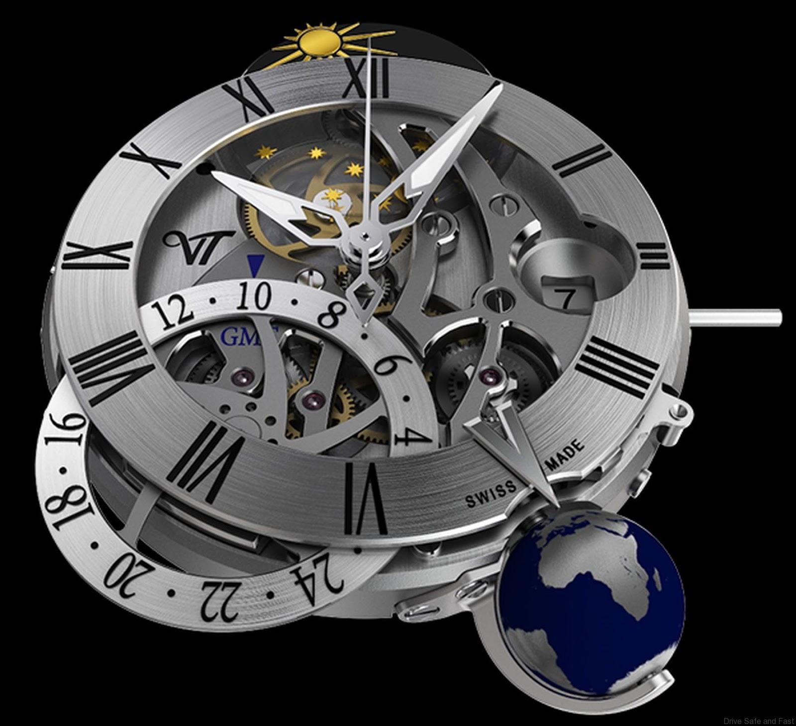 From a design perspective, the GMT-1 maintains the spirit of the previously released GMT-3 while offering customers an alternative to the retrograde display. The GMT-1 carries a spherical date aperture at 3 o’clock, a metaphorical representation of the moon, positioned between the earth and the sun.
