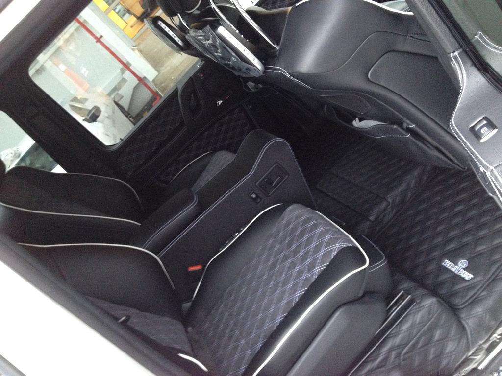 Another focus of the Brabus refinement for the mightiest G model ever is in the cockpit. The company upholstery shop meticulously crafted an exclusive Brabus fine leather ambiance from a combination of fiery red and black leather and Alcantara.