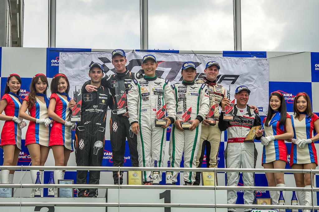 In the end, the podium saw Fong and Kim joined by Lamborghini’s Edoardo Liberati and Andrea Amici – the Italians carding their third podium of the season in as many rounds – and the first visit by a Porsche team to the GT Asia Series podium this season. Unusually it was not the Craft-Bamboo Racing operation who dominated the 2013 running at Okayama that stood on the third step, but the satellite team of Tim Sugden and GT Asia Series rookie Jono Lester.