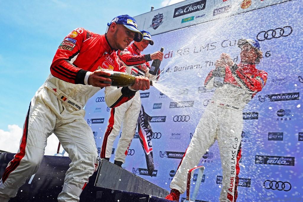 The three youngest drivers on the grid completed the podium in Round 4 of the 2016 Audi R8 LMS Cup at the Chang International Circuit in Buriram, Thailand. Martin Rump of Champion Racing Team put in a masterclass performance to win from pole, while the second place of Alessio Picariello of MGT Team by Absolute fired the talented Belgian into the overall championship lead. Jan Kisiel of KCMG achieved his first podium in the Audi R8 LMS Cup, coming in third.