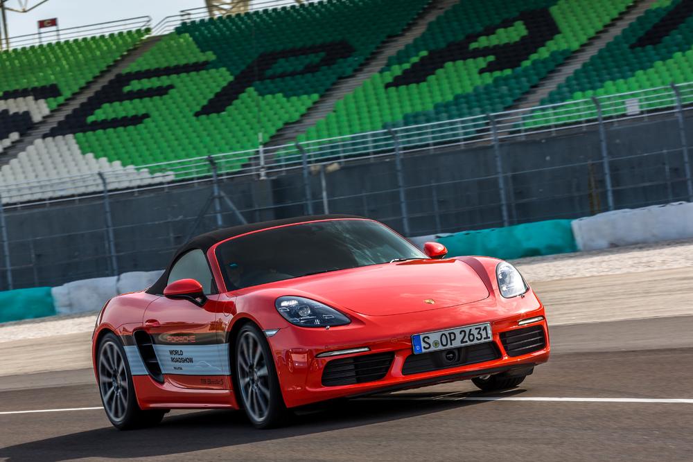 718 Boxster 2.0 litre four-cylinder mid-mounted Boxer engine with an output of 300 hp (220 kW); 7-speed double clutch gearbox (PDK); acceleration from 0 -100 km/h in 4.9 seconds; max speed of 275 km/h; CO2 emissions: 158 g/km
