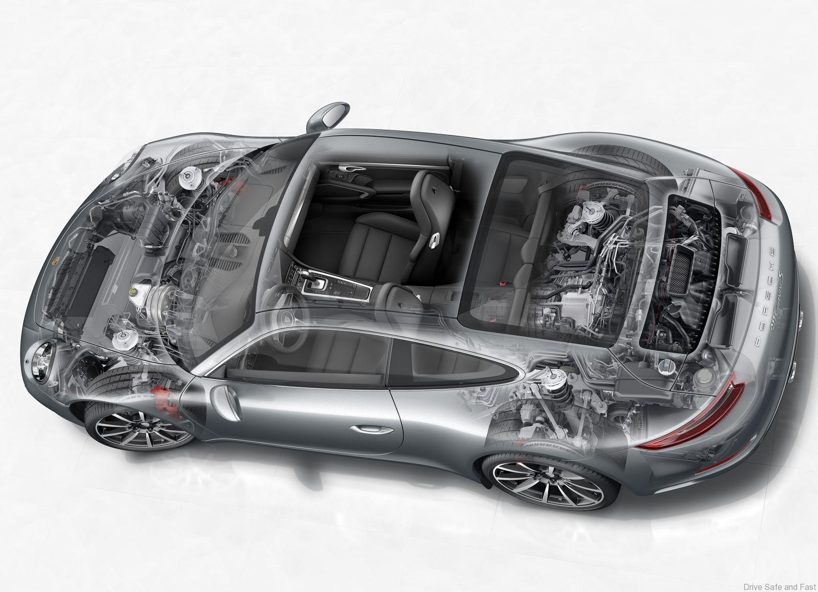 The greater power of the 911 Carrera S results from turbochargers with modified compressors, a specific exhaust system and tuned engine management.