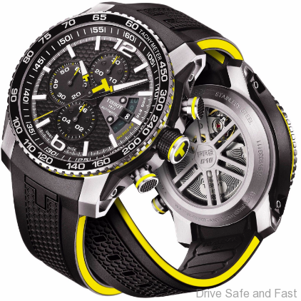 The Tissot PRS 516 Extreme is based on a motorsport-inspired Tissot timepiece from the 1960s but adds some contemporary touches. Imagine it as Tissot’s muscle car era revival watch with its slick retro lines and beautiful minimalized classic drivers style. The smooth lines of the case evoke the bodywork of modern automobiles and the details on the dial and bezel echo those on car dashboards. The strap has a racing-stripe design with a honeycomb pattern reminiscent of an automobile’s ventilation system; there is also a version available that has the original model’s famous bracelet, with cut-out circles illustrating the steering wheels of racecars. The automatic movement, visible through a clear caseback, powers a chronograph and date display.
