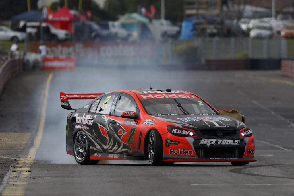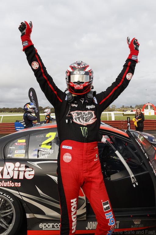 In a rain-marred race that created havoc for drivers on the slippery track, the Holden Racing Team driver claimed his first Supercars victory since Townsville in 2014 after holding off Red Bulls Van Gisbergen in a thrilling finish.