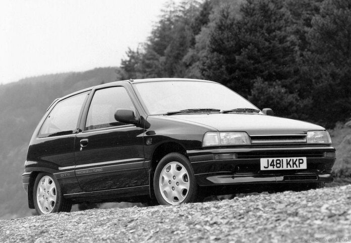 This is the remarkable Daihatsu Charade GTti. It was launched in 1987 and sales continued until 1993. At its launch, this Charade GTti was the fastest 1.0L production car in the world.