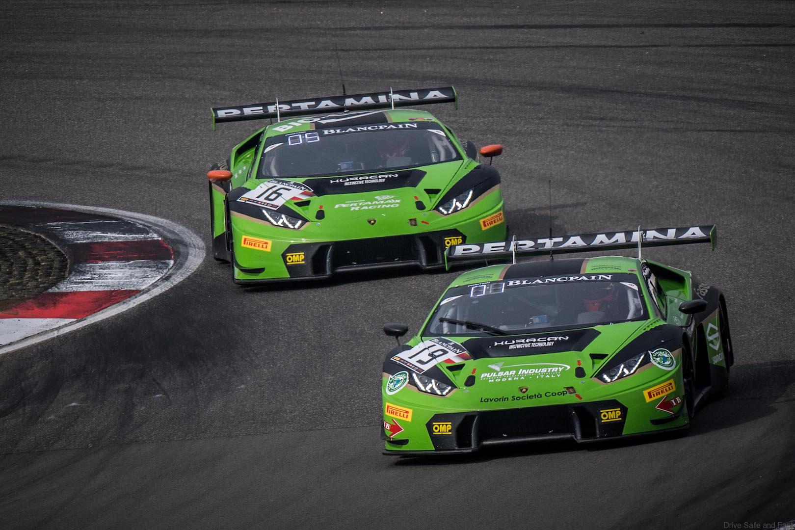 During the race weekend at the Nürburgring, last round of the Blancpain GT Series Endurance Cup, the two Lamborghinis fielded by Grasser Racing Team have dominated the track since the Pre-Qualifying session on Saturday afternoon. Lamborghini GT3 Factory Driver Mirko Bortolotti behind the wheel of the No. 16 car, in fact, set a sensational 1’55″022 (last year the Italian driver signed the pole position on the same track), the quickest time among the 54 GT3 cars lined up on the grid.