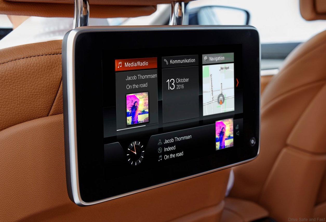 The optional Rear-seat entertainment Professional system offers occupants in the rear the luxury of two independently controlled, high-resolution 10.2-inch screens with DVD player, which also include connections for MP3 players, USB devices, games consoles and headphones. Passengers can also access the vehicle’s entertainment functions, such as the TV, radio or the DVD changer, as well as surf the internet or use their phone.
