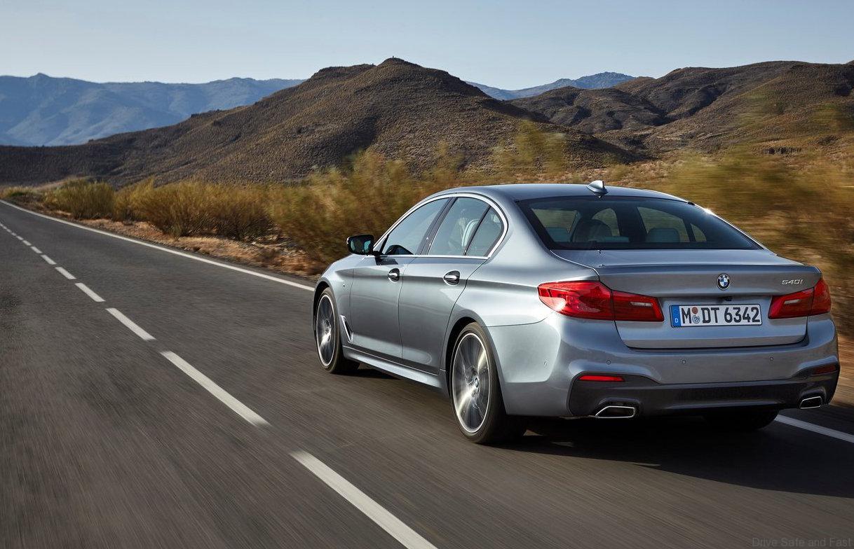 The range-topping engine for the time being can be found in the new BMW 540i and generates 250 kW/340 hp (+25 kW/34 hp) between 5,500 and 6,500 rpm. The three-litre straight-six musters up a mighty 450 Nm / 332 lb ft of torque (+50 Nm/37 lb-ft) from 1,380 – 5,200 rpm. Despite the superior output and the resulting extra dose of dynamic ability, average consumption is a frugal 6.5 l/100 km (43.5 mpg imp). CO2 emissions come in at 150 g/km, a reduction of eleven per cent over the outgoing model. The sedan powers from 0 to 100 km/h (62 mph) in just 5.1 seconds and top speed is electronically limited to 250 km/h (155 mph). The all-wheel-drive BMW 540i xDrive sets a new class-beating time of 4.8 seconds for the sprint from 0 to 100 km/h (62 mph). Its fuel consumption is 6.7 l/100 km (42.2 mpg imp) and CO2 emissions come in at 156 g/km.