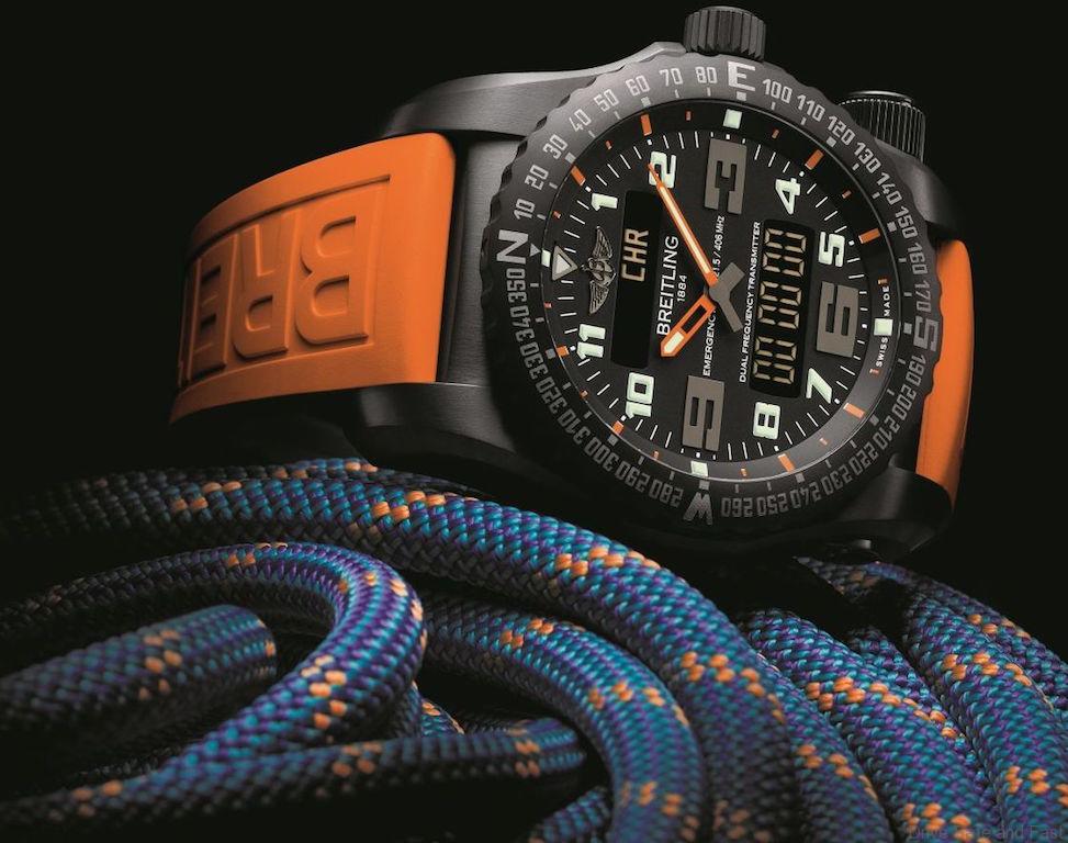 This is the world’s first wristwatch with built-in dual frequency personal locator beacon is now available in three special editions combining a black titanium case with orange or yellow accents, or a blue mother of-pearl dial.