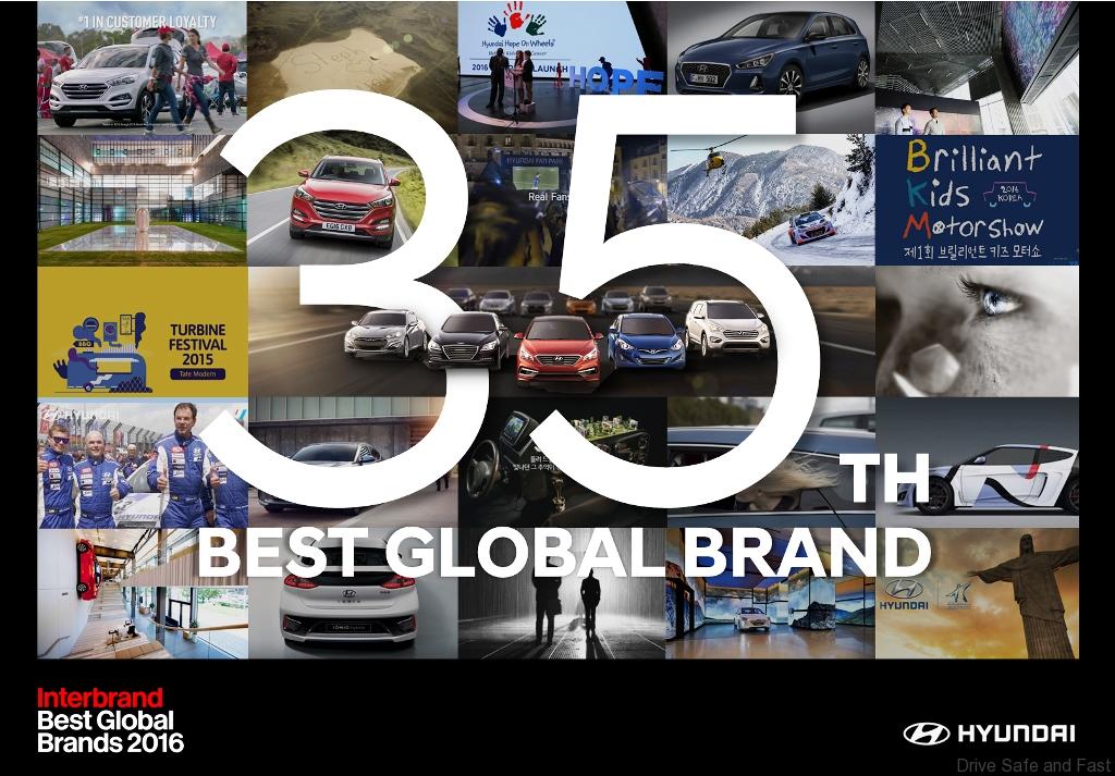 Hyundai Motor is the world’s 35th biggest brand according to the latest rankings published by global brand specialists Interbrand, overtaking four other renowned brands in the past year.