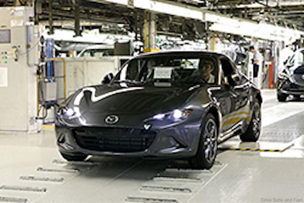 Mazda Motor Corporation started production of the Mazda MX-5 RF retractable hardtop (known as Roadster RF in Japan) yesterday at Ujina Plant No.1 near its global headquarters in Hiroshima. Production began with models bound for North American and European markets where sales launches begin from early 2017. In Japan, the MX-5 RF will go on sale later this year.