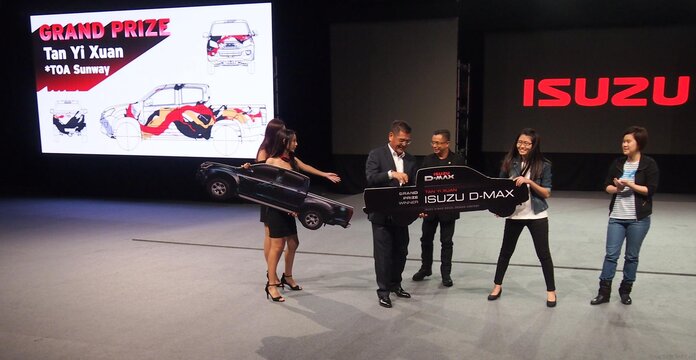 Tan Yi Xuan won a brand new Isuzu D-Max 2.5L pick-up truck worth RM115,000 in a special Isuzu D-Max Decal Design Contest jointly organized by Isuzu Malaysia Sdn Bhd, The One Academy and Sime Kansai Paints Sdn Bhd.