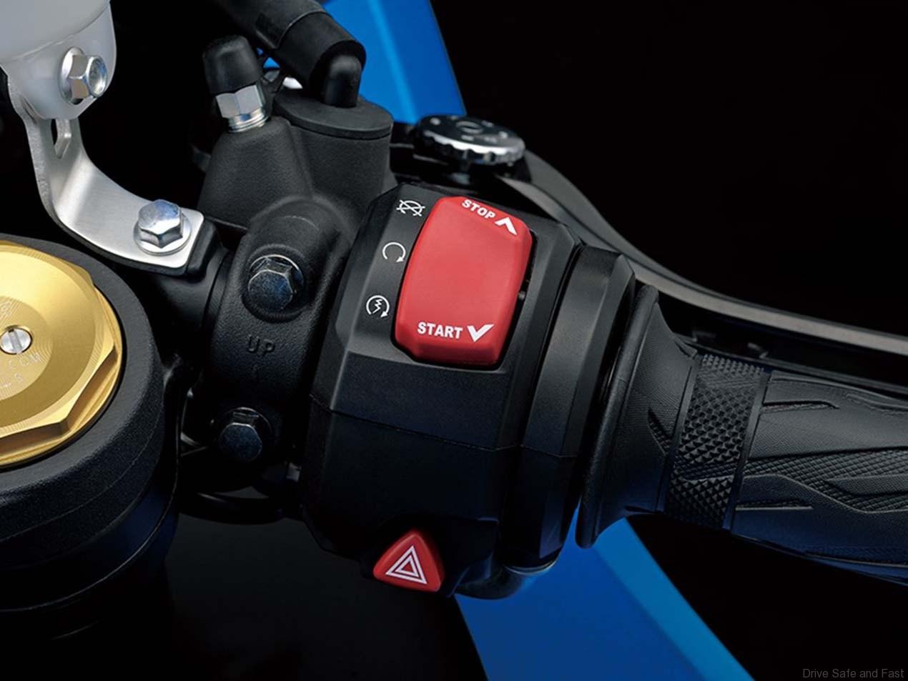 – Launch control system is adopted for the first time on Suzuki production models (excluding competition models). The system makes it easier to get a good start by helping it reduce the chance of a wheelie by automatically limiting engine rpm and optimizing torque delivery.