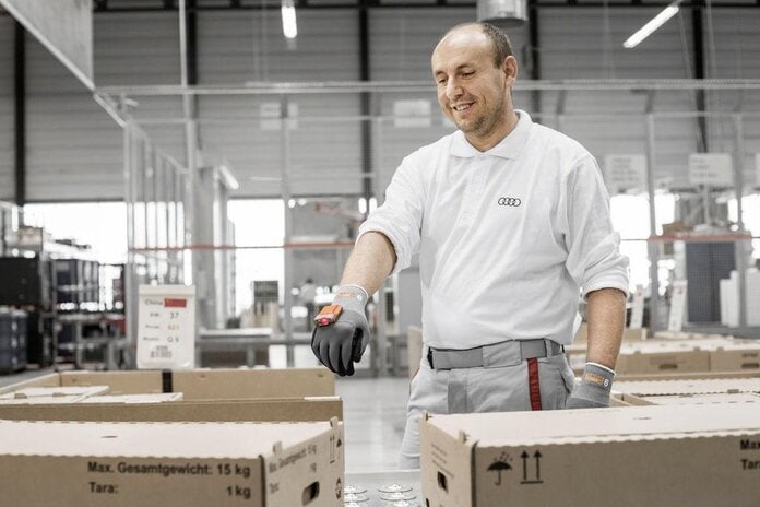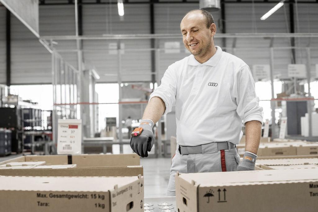 Scanner-gloves now make work easier for international logistics employees at the Audi plant in Ingolstadt: For the worldwide dispatch of car components, they now use the “ProGlove” by the name of “Mark” with its embedded barcode scanner. This means they have both hands free and can work more ergonomically. After a four-week pilot phase, Audi employees are now using ten of these wearables in five positions in the Ingolstadt plant.