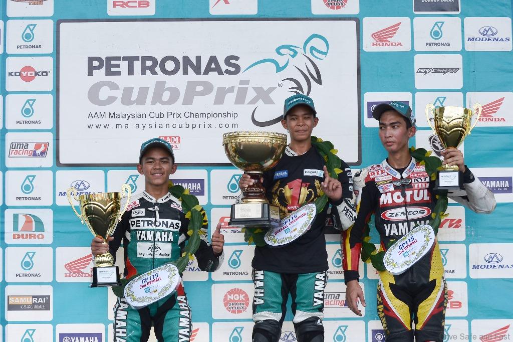 Akid’s second win of the season brought his total points haul to 151 and confirmed a fourth major title for team Maju Motor who had already won the CP130 riders and team awards as well as the CP115 team award. Akid’s team mate Haziq Fairues ended the season in second overall with 124 points while the early leader Tengku Amirul would have to be content with third overall position.