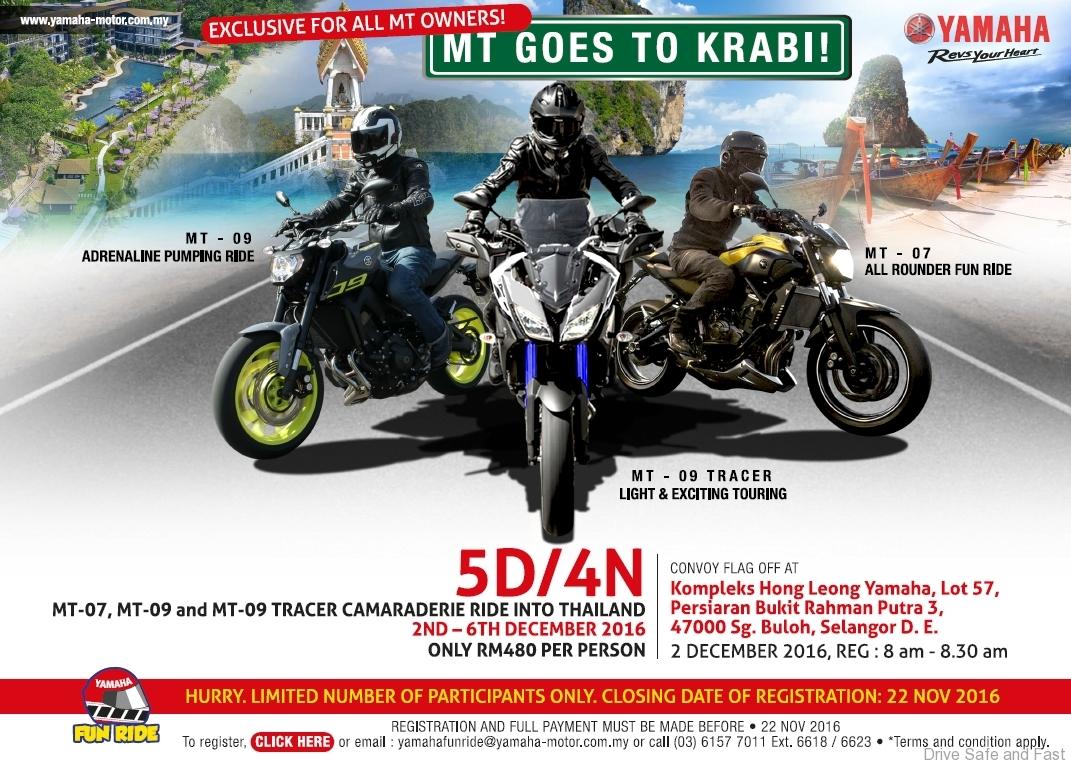 Hong Leong Yamaha Motor (HLYM) is organising an exclusive ride to Krabi, Thailand for all Yamaha MT-07, MT-09 and MT-09 Tracer owners.