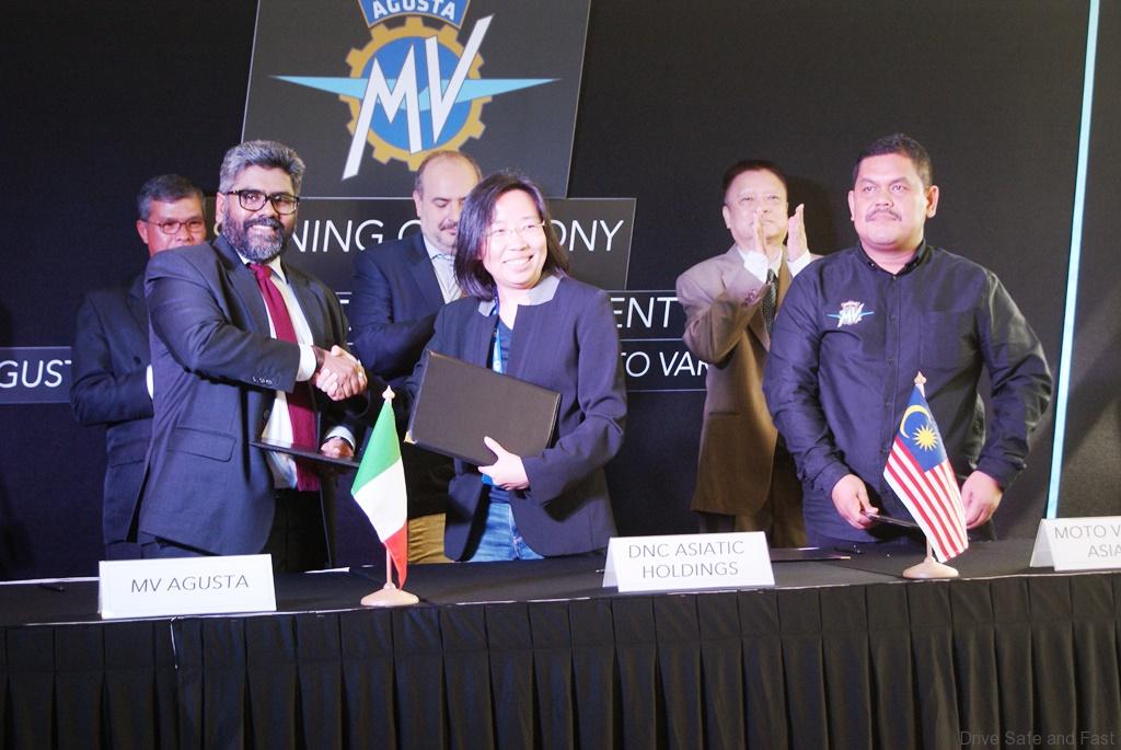 The agreement was signed today at the DNC Asiatic Holdings plant in Olak Lempit, Banting, Selangor, with the presence of Judah Sangaran, Far East Country Manager, MV Agusta Motor SpA, Hu Ying, Executive Director of DNC Asiatic Holdings, as well as Muhamad Zamry Abu Samah, Managing Director of Moto Varese Asiatic.