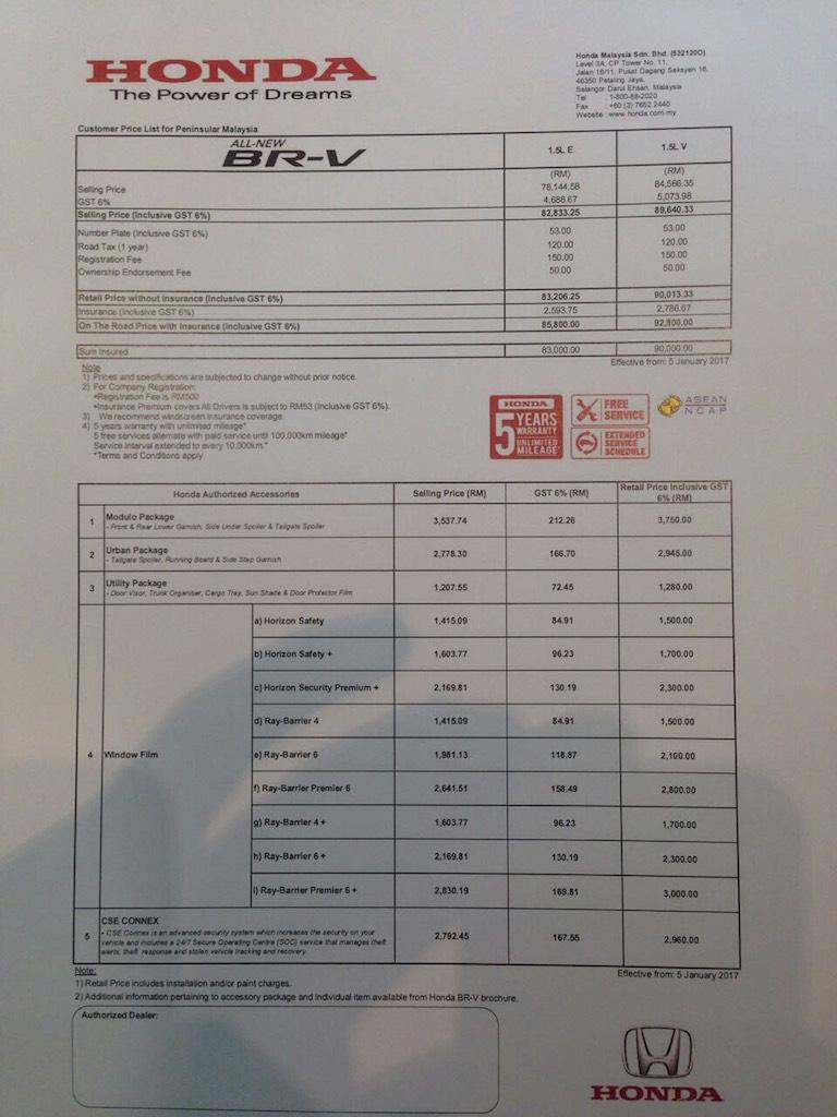 Congrats as a 5-Star ASEAN NCAP rating was achieved for the BR-V, so you can be assured of getting a very safe and well built vehicle.