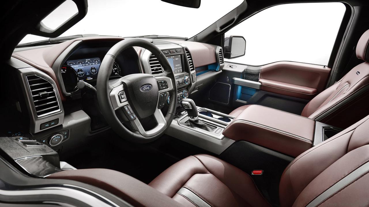 F-150 also brings two new seating trim colors – Dark Marsala for F-150 Platinum, while top-of-the-line F-150 Limited offers a Navy Pier environment. New trim offerings including carbon fiber appearance appliques on F-150 XLT Sport and Lariat Sport models, while the famed F-150 King Ranch features new Kingsville Appointed seats.