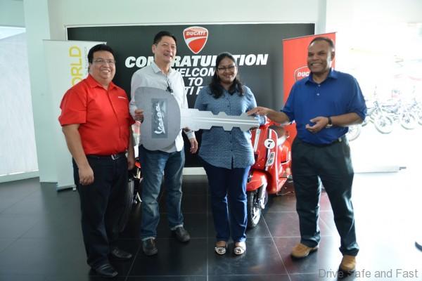 Taking advantage of the Ducati Red Weekend celebrations at Ducati Kuala Lumpur showrom, Naza Automall Petaling Jaya, over the weekend, Naza World has presented the winners of the Merdeka Auto Fair 2016 Spend and Win Contest with their prizes.