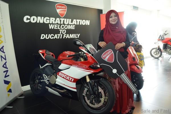 The Grand Prize which is a Ducati Panigale 1199 ABS with special WSBK Livery goes to Juzaimi Binti Hassan after she bought a Ducati Monster 821.