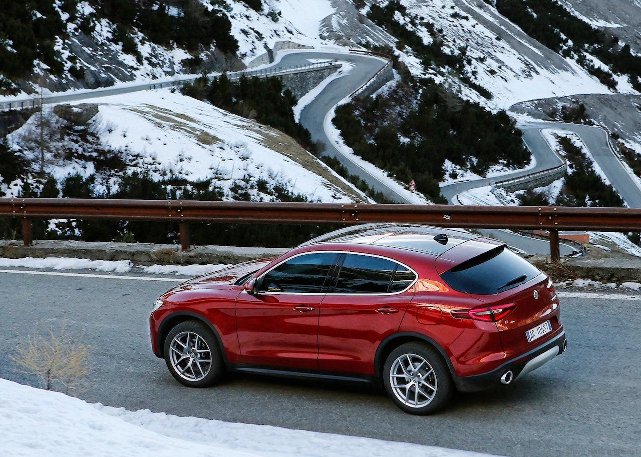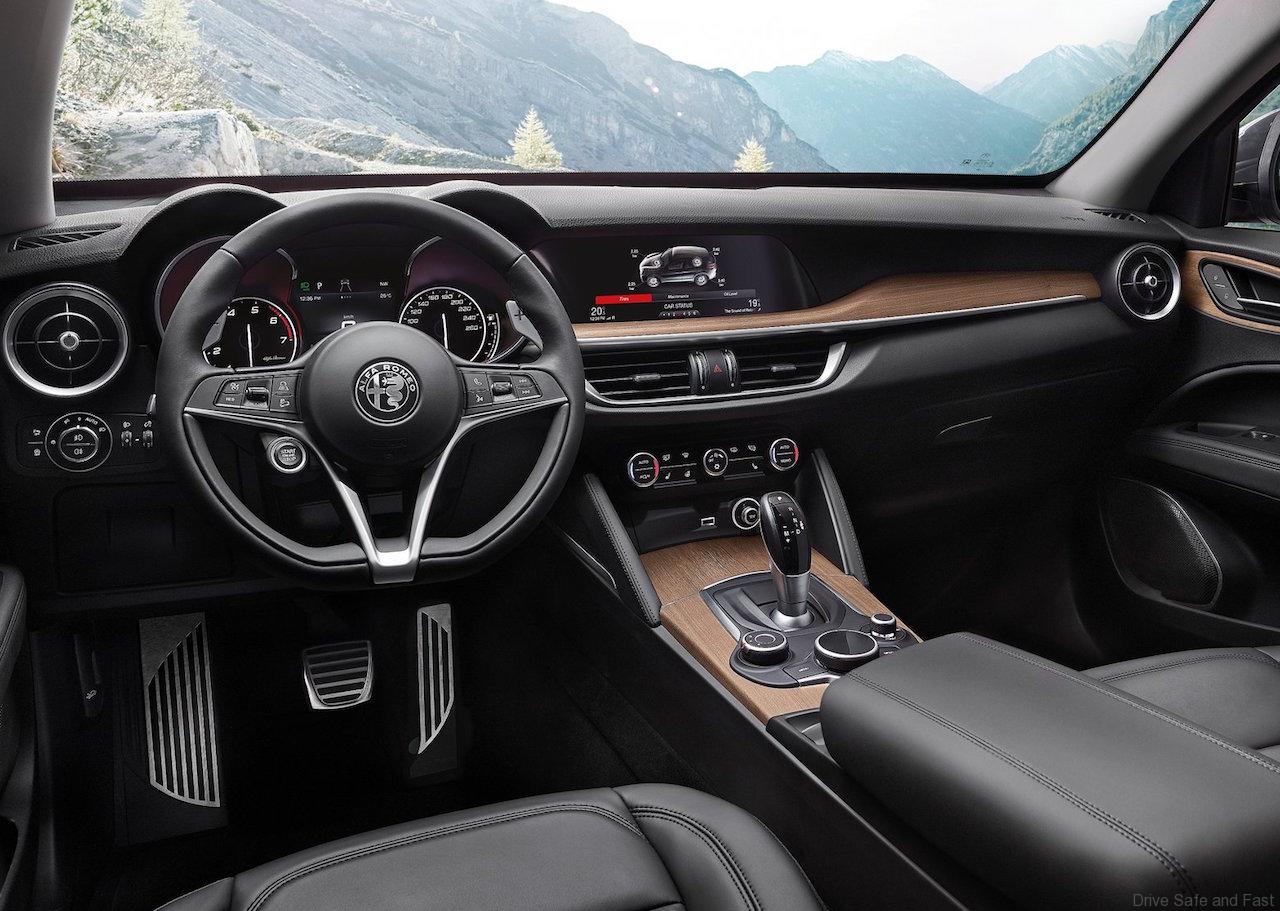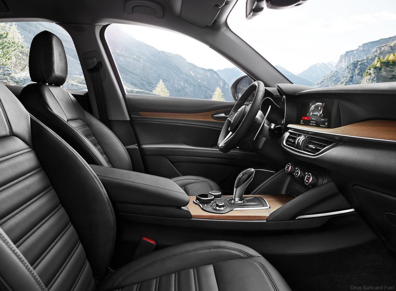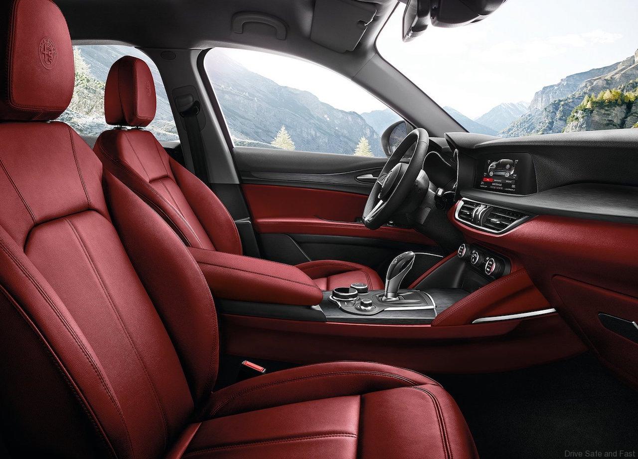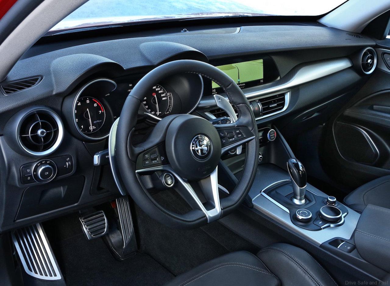 The Alfa Romeo Stelvio 2.0 280 HP turbocharged Petrol engine (peak torque of 400Nm at 2,250 rpm) is best in class in terms of acceleration, powering from 0 to 100 km/h in just 5.7 seconds. The top speed is 230 km/h.