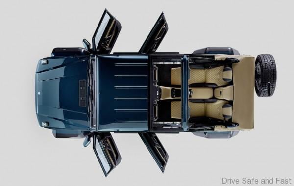 The rear passengers enjoy the majestic open-air experience from their single seats. On demand, an electrically operated glass partition separates the rear compartment from the driver’s section. In addition, the glass can be changed from transparent to opaque at the press of a button.